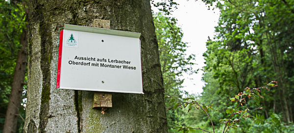 Hierbei ist natürlich auch das Schild „Schöne Aussicht“ interessant, denn die fehlt auf dem entsprechenden Abschnitt des Hexenstieges. Auf dem Weg geht es weiter bergauf und nach knapp 1.000m kommt die angesagte schöne Aussicht auf den oberen Teil Lerbachs.