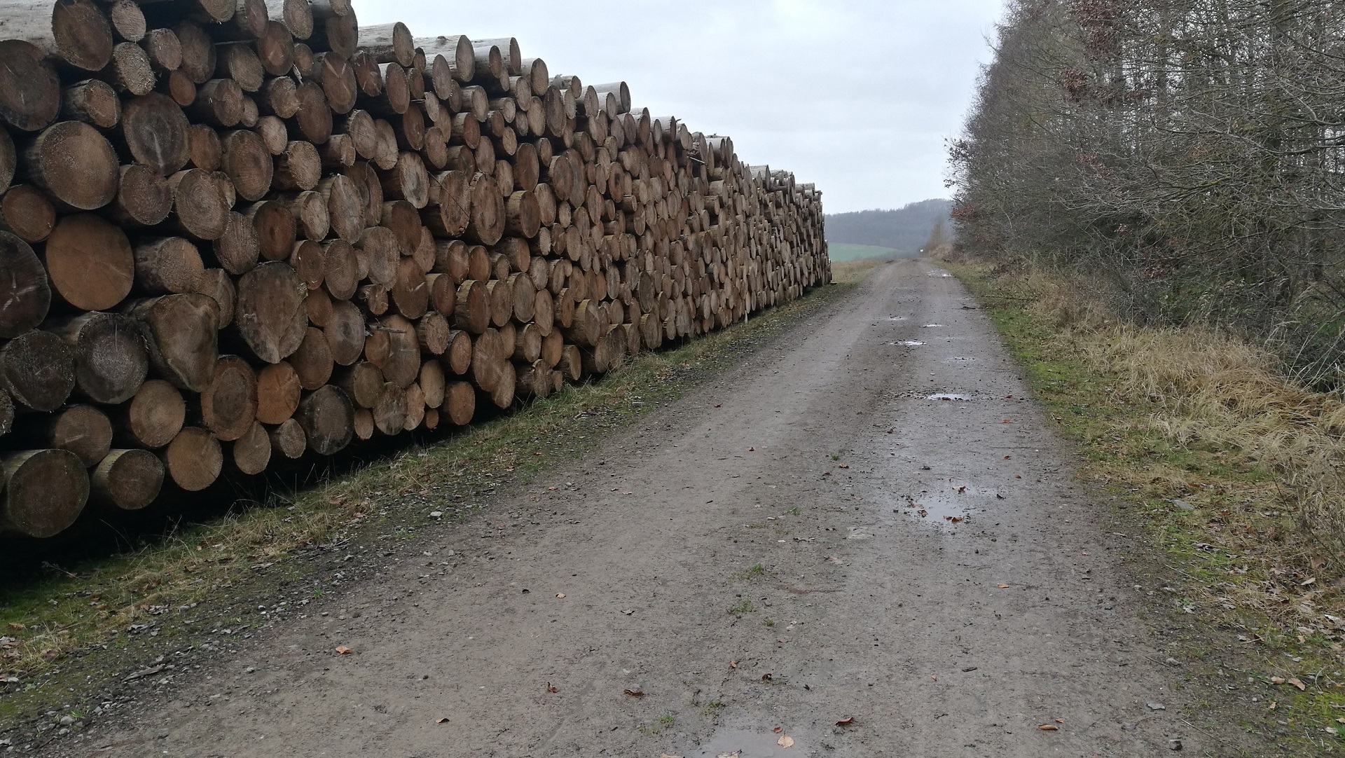 Durch die vielen Baumfällarbeiten gibt es aktuell immer wieder Holzlager an der Wanderstrecke. In deren Windschatten ist es auch sicher und vor allem nicht so windig, zumal meistens drum herum keine Bäume mehr stehen. Das wäre auch ein guter Platz für ein sicheres Nachtlager.
