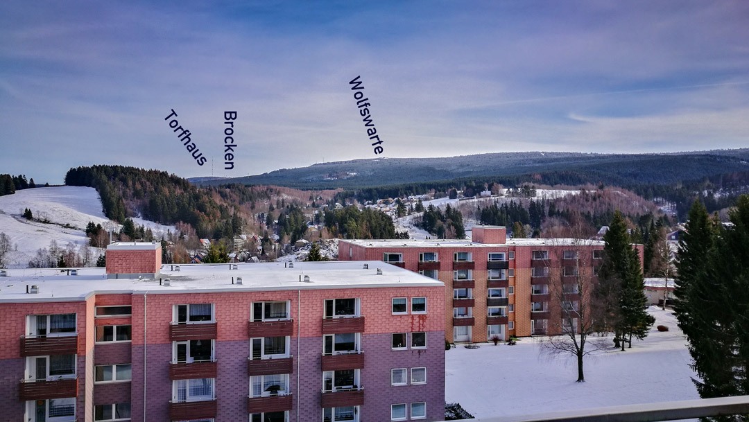 Auf dem Balkon habe ich eine Webcam installiert, damit Ihr zum einen das Wetter in Altenau und auch schon die Zwischenziele Torfhaus und Brocken seht … je nach Wetter.